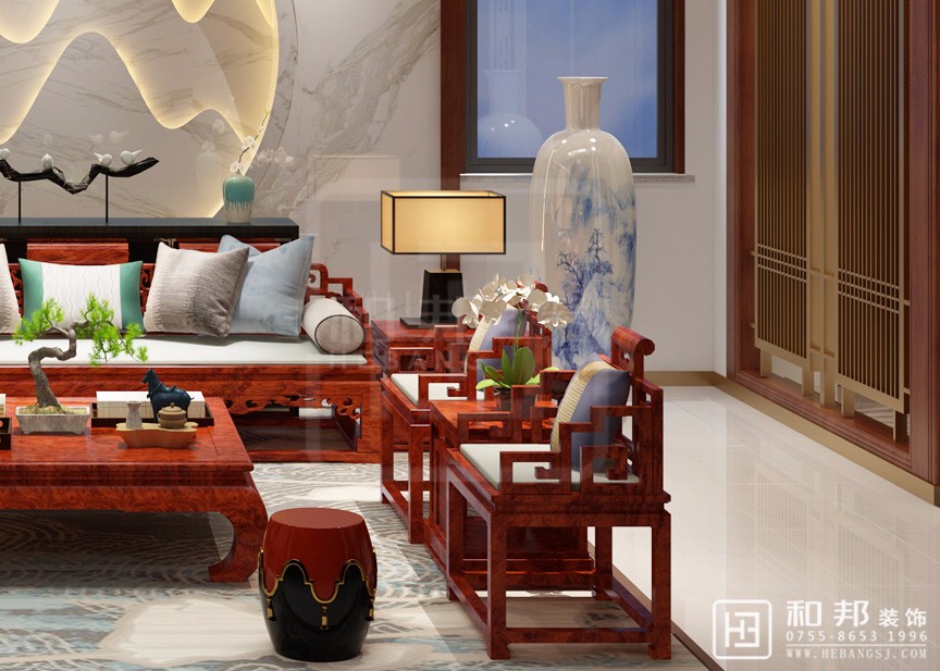 運用了中式的傳統元素,并與當代人的審美需求相融合,提煉了其中經典元素并加以簡化和豐富。